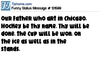 X Our Father who art in Chicago. Hockey be thy name. Thy will be done, the Cup will be won, on the ice as well as in the stands.