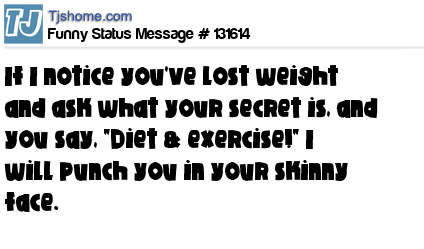X says If I notice you've lost weight and ask what your secret is, and you say, "Diet & exercise!" I will punch you in your skinny face.