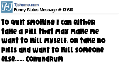 X To quit smoking I can either take a pill that may make me want to kill myself, or take no pills and want to kill someone else...... Conundrum