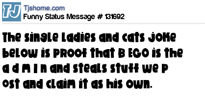 X says The single ladies and cats joke below is proof that B EGO is the a d m I n and steals stuff we p 0st and claim it as his own.