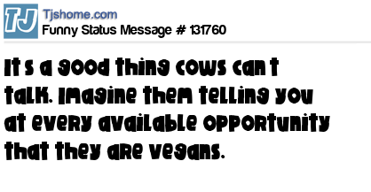 X says It’s a good thing cows can’t talk. Imagine them telling you at every available opportunity that they are vegans.