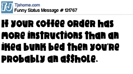 X says If your coffee order has more instructions than an ikea bunk bed then you're probably an a$$hole.