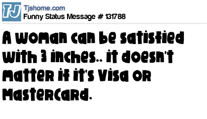 X says A woman can be satisfied with 3 inches.. it doesn't matter if it's Visa or MasterCard.