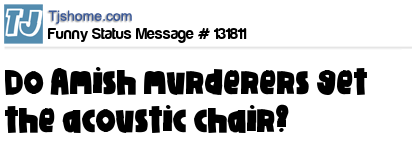 - # 131873 for the question "Do Amish murderers get the acoustic chair? The answer is no. They use static electricity from the carpet.