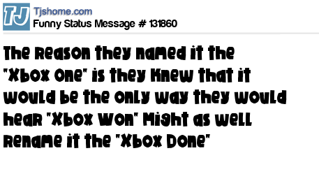 X says The reason they named it the "Xbox One" is they knew that it would be the only way they would hear "Xbox Won" Might as well rename it the "Xbox Done"