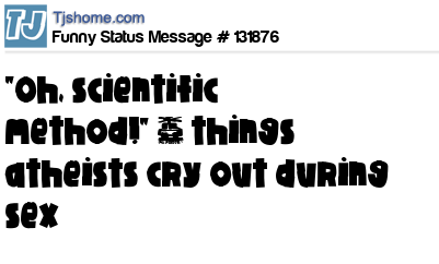 X says "Oh, scientific method!" ~ things atheists cry out during sex