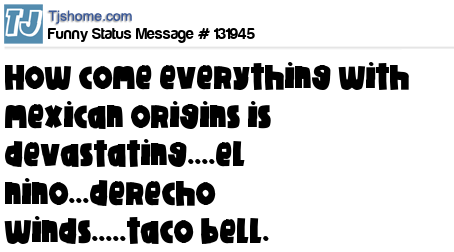 X How come everything with mexican origins is devastating....el nino...derecho winds.....taco bell.
