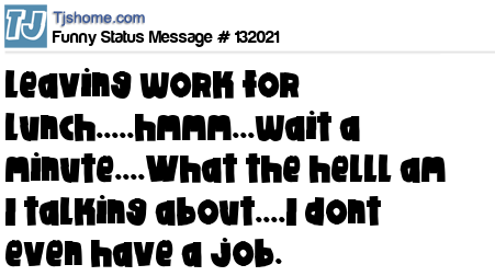 X Leaving work for lunch.....hmmm...wait a minute....What the helll am I talking about....I dont even have a job.