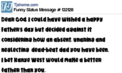X says Dear God, I could have wished a happy Father's day but decided against it considering how an absent, unaring and neglecting dead-beat dad you have been. I bet Kanye West would make a better father than you.