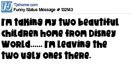 - # 159539 I'm taking my two beautiful children to Disney World. I'm leaving the two ugly ones at home.