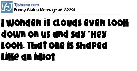 - # 135856 I wonder if clouds look down on us and say "Hey look! That one looks like an idiot."