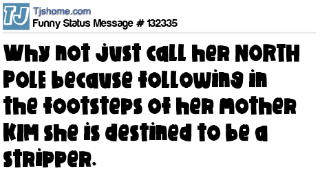X says Why not just call her NORTH POLE because following in the footsteps of her mother KIM she is destined to be a stripper.