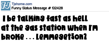 - # 96298 I be talking fast as hell at the gas station when I'm broke . . . lemmeget5on2