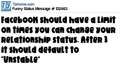 - # 76367 Facebook should have a limit on how many times you can change your relationship status...After 5 it should default to 'Unstable'