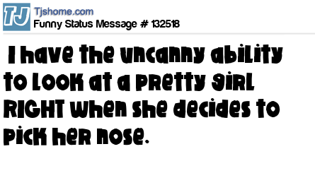 X I have the uncanny ability to look at a pretty girl RIGHT when she decides to pick her nose.