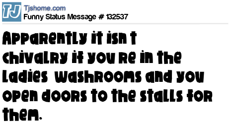 X says Apparently it isn’t chivalry if you’re in the ladies’ washrooms and you open doors to the stalls for them.