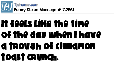 X says It feels like the time of the day when I have a trough of cinnamon toast crunch.