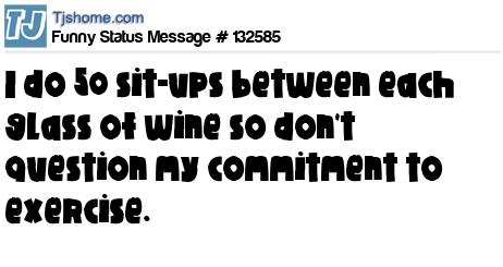 X says I do 50 sit-ups between each glass of wine so don't question my commitment to exercise.