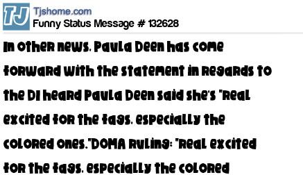- # 132677 In other news Paula Deen as made a statement in regards to the DOMA ruling: "I'm real excited for the fags, especially the colored ones."