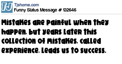 - # 94710 Mistakes are painful; but as time goes by, it becomes a collection of experiences called Lessons. Live life and embrace life lessons!