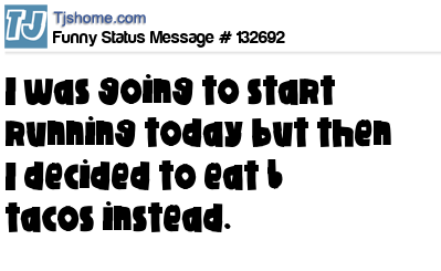 X says I was going to start running today but then I decided to eat 6 tacos instead.