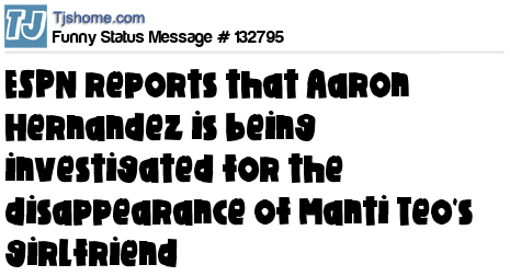- # 132802 " Aaron Hernandez killed my girlfriend too." Manti Te'o