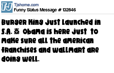 X says burger king just launched in S.A. ~ Obama is here just to make sure all the american franchises and wallmart are doing well.