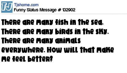 X says There are many fish in the sea. There are many birds in the sky. There are many animals everywhere. How will that make me feel better?