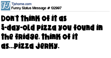 X says Don't think of it as 5-day-old pizza you found in the fridge, think of it as...pizza jerky.