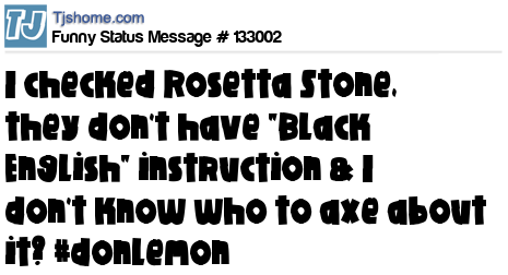 X says I checked Rosetta Stone, they don't have "Black English" instruction & I don't know who to axe about it? #donlemon