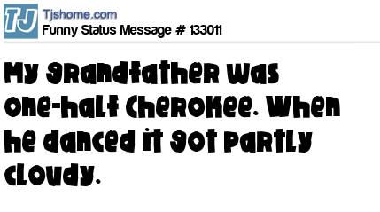X says My grandfather was one-half Cherokee. When he danced it got partly cloudy.