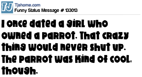 - # 108061 I once dated a girl with a parrot. The thing was crazy and never shut up! The parrot was cool though.