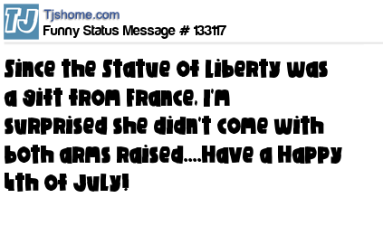 X Since the Statue of Liberty was a gift from France, I'm surprised she didn't come with both arms raised....Have a Happy 4th of July!