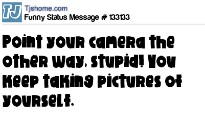 X says Point your camera the other way, stupid! You keep taking pictures of yourself.