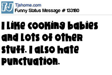 X says I like cooking babies and lots of other stuff. I also hate punctuation.