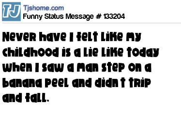 X says Never have I felt like my childhood is a lie like today when I saw a man step on a banana peel and didn’t trip and fall.