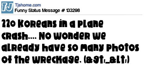 X 220 Koreans in a plane crash.... No wonder we already have so many photos of the wreckage. (>_<)