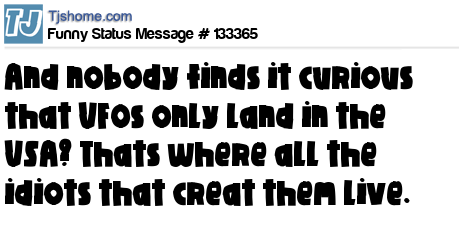 X says And nobody finds it curious that UFOs only land in the USA? Thats where all the idiots that creat them live.