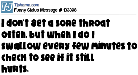 X says I don't get a sore throat often, but when I do I swallow every few minutes to check to see if it still hurts.