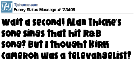 X says Wait a second! Alan Thicke's sone sings that hit R&B song? But I thought Kirk Cameron was a televangelist?