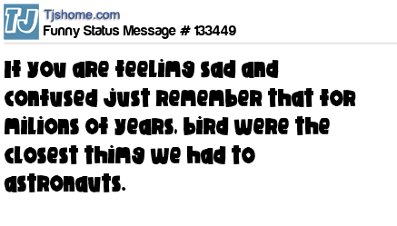 X says if you are feelimg sad and confused just remember that for milions of years, bird were the closest thimg we had to astronauts.