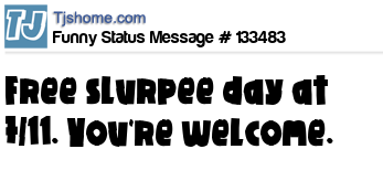 X says Free slurpee day at 7/11. You're welcome.