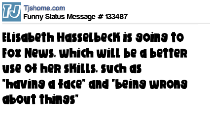 X Elisabeth Hasselbeck is going to Fox News, which will be a better use of her skills, such as "having a face" and "being wrong about things"