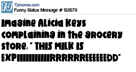 X says imagine Alicia Keys complaining in the grocery store, " THIS MILK IS EXPIIIIIIIIIIIRRRRRREEEEEEDD"