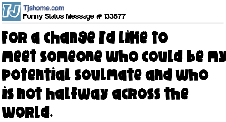 X says For a change I'd like to meet someone who could be my potential soulmate and who is not halfway across the world.