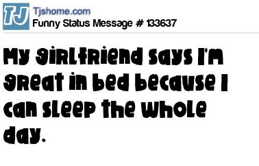 X says my girlfriend says I'm great in bed because I can sleep the whole day.