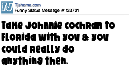X says take Johnnie cochran to Florida with you & you could really do anything then.