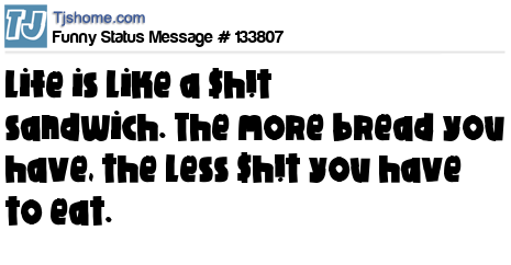 - # 153041 Life is like a $h!t sandwich. The more bread you have the less $h!t you have to eat.
