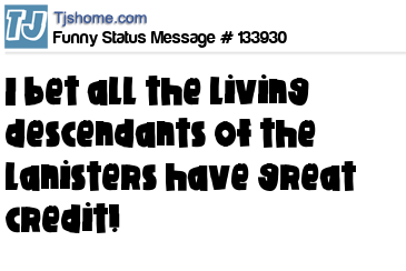 X says I bet all the living descendants of the Lanisters have great credit!