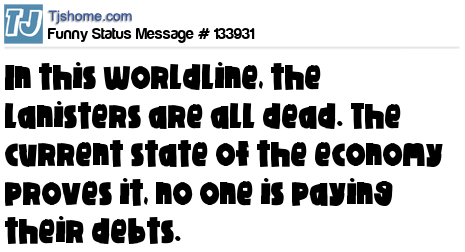 X says In this worldline, the lanisters are all dead. The current state of the economy proves it, no one is paying their debts.